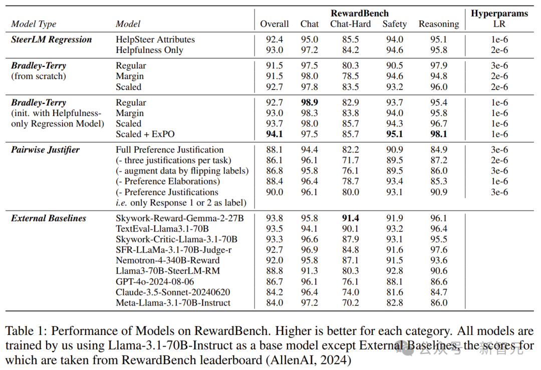 研究者发现,当使用每种奖励模型的最佳形式时,Bradley-Terry 类型和回归类型的奖励模型彼此竞争。