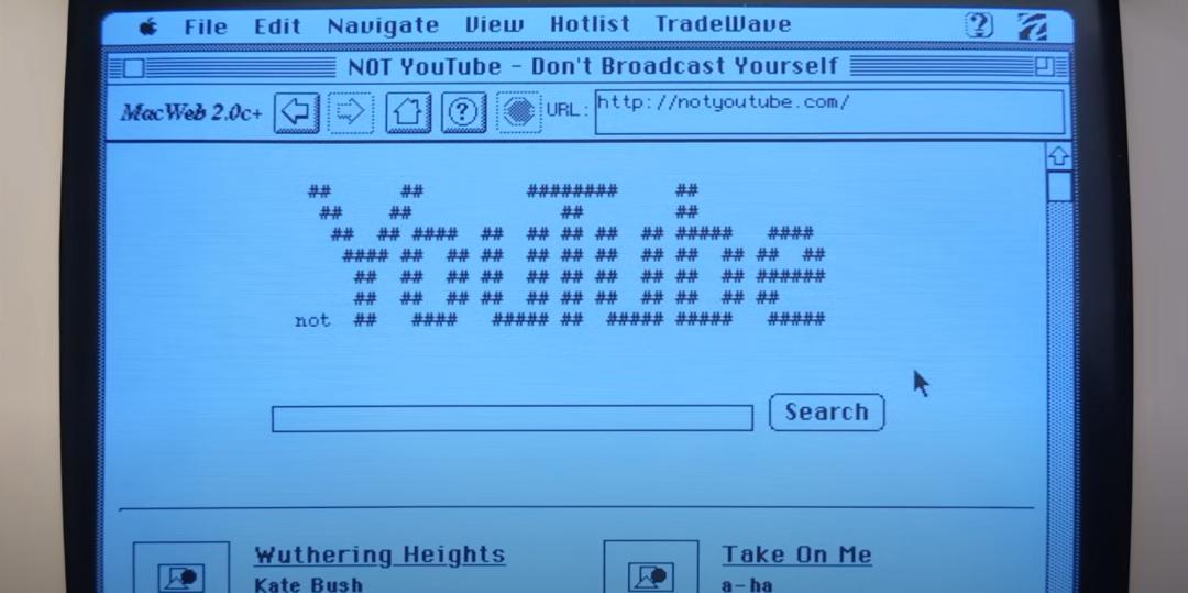 Hunter 尝试运行 Mac Web 2.0 浏览器,这是由 Tradewave 在 1996 年发布的,虽然不支持 CSS 或 JavaScript,但能够处理基本的 HTML——然而,现代网站大多采用加密通信,老旧的 Mac 浏览器自然无法支持 HTTPS 协议。