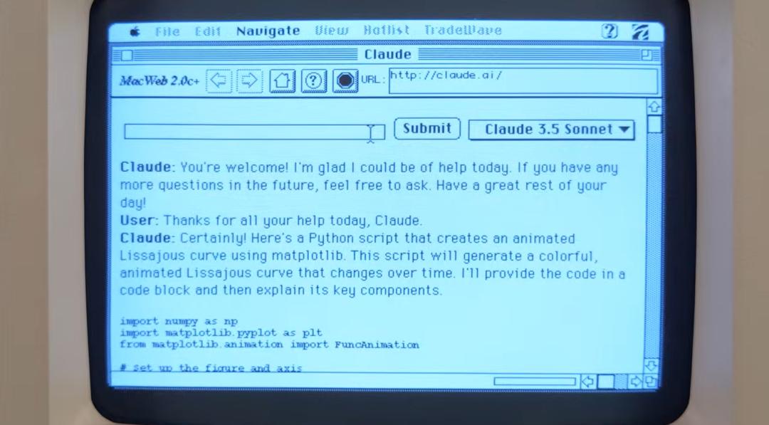 近来,YouTube 博主 Hunter Irving 在最新一期视频中,对一台 1986 年的苹果 Macintosh Plus 进行了一系列创新改造,不仅把它成功连上了互联网,还能与 ChatGPT 聊天,甚至用 Claude 3.5 写代码!