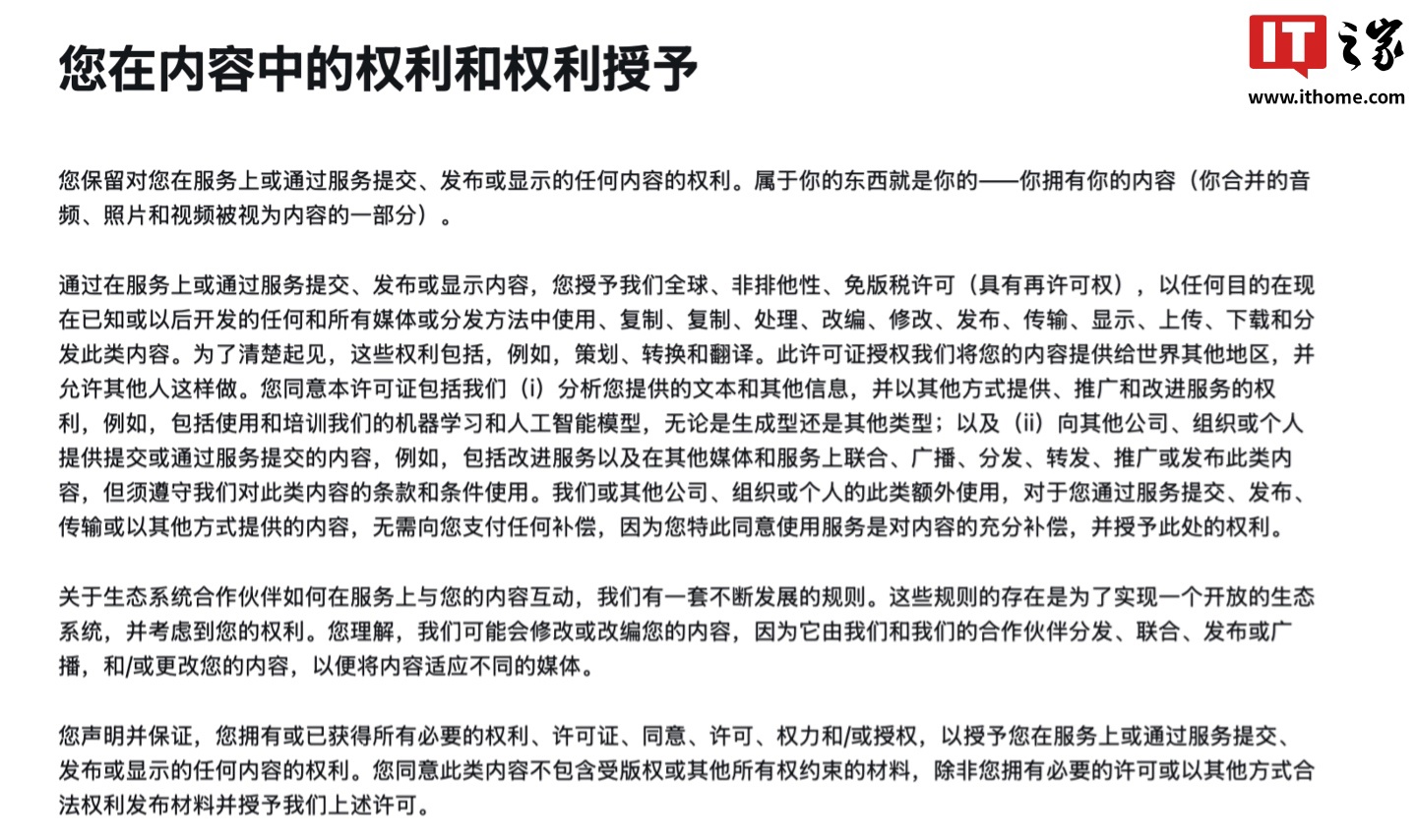 IT之家 10 月 18 日消息,X 平台本周宣布,该平台将从 11 月 15 日起更新其服务条款和隐私政策,新增与 AI 和机器学习相关的内容,允许第三方使用该平台的内容来训练 AI 模型。