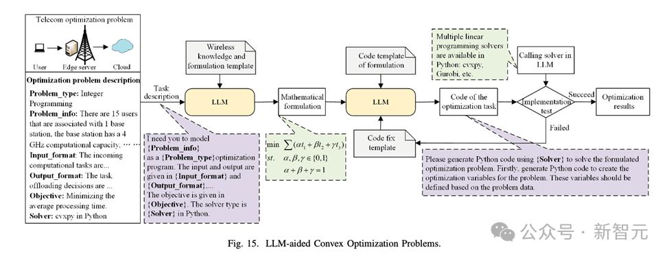 凸优化是通信网络中广泛应用的一种技术,但其通常需要专业的建模与问题转化。LLM通过自动化问题建模和求解器的结合,能够帮助运营商快速定义并求解凸优化问题,节省大量人工处理时间。