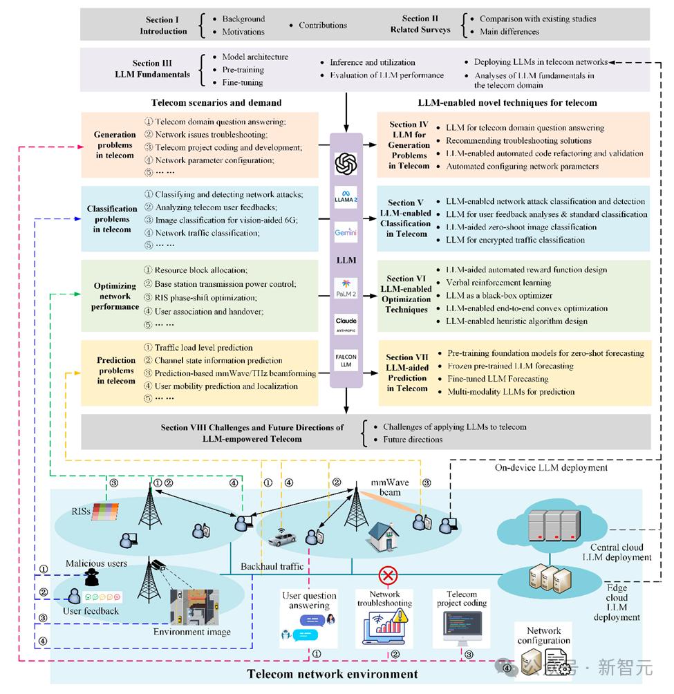 为了探究这个问题,来自麦吉尔大学、西安大略大学和西蒙菲莎大学的学者们将探索大语言模型如何从语言任务的起源扩展到成为电信网络中不可或缺的工具。从优化3D无线信号传输环境到生成定制化网络配置,LLM正在推动智能高效的6G通信网络的建设,展望人类与人工智能携手共创的通信未来。