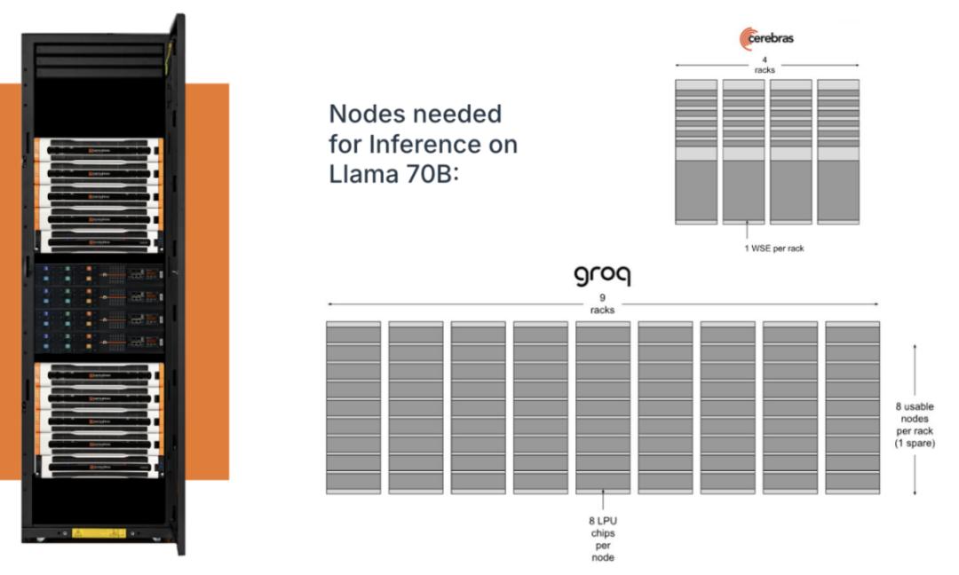 从最基础的成本上说,由于 Sambanova 的数据流架构 RDU 不仅拥有大的片上 SRAM,同时拥有 HBM 层面的优势,相比于其他的几个单纯依靠片上 SRAM 的数据流企业,用户需要支持大型语言模型的基础设施更少。例如,想在 Llama 70B 上推理,对于有些 AI 芯片来说需要五百多个芯片,或者相当于三百多个芯片的 4 个 wafer ,而 SambaNova 只需要 拥有 16 个芯片的 1 个机架。(https://sambanova.ai/blog/sn40l-chip-best-inference-solution)