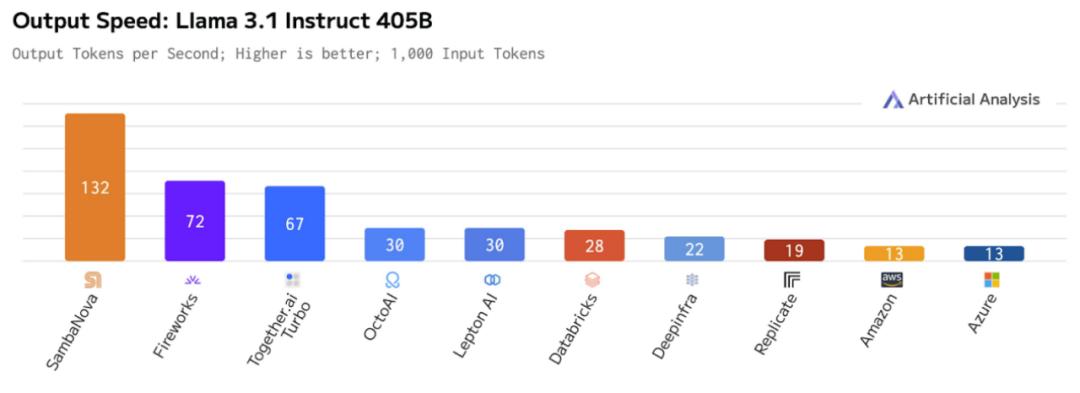 当前的 AI 推理平台中,SambaNova 是唯一能在 Llama 3.1 405B 上提供每秒超过 100 个 Token 推理速度的平台。
