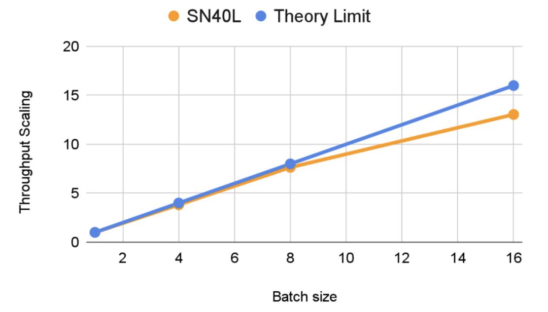 SambaNova 的研究者观察到,SN40L 在 Llama 3.1 70B 上可以实现较好的吞吐量 Scaling。