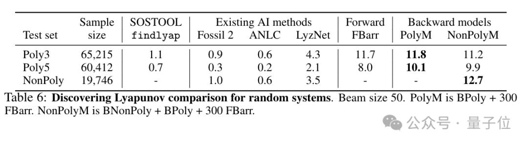 面对随机生成的新多项式系统,模型成功找到了10.1%-11.8%的李雅普诺夫函数,而此前最好的算法工具只有0.7%-1.1%。