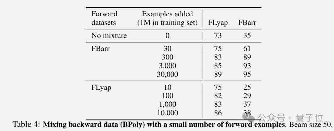 特别是在后向数据训练集中添加少量前向生成数据示例,带来显著的分布外测试性能提升。