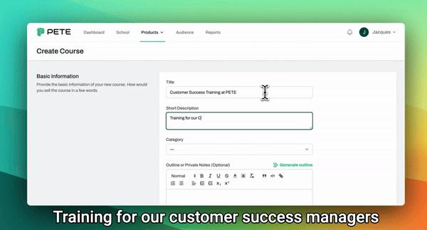 PETE基于人工智能技术帮助企业构建自己的在线学院,在PETE,企业可以生成培训课程,企业只需要定义课程描述和目标,PETE就会为企业用户生成精心策划的课程,其中包括大纲、笔记和课程内容,其中包含文本、图像、音频和视频内容。