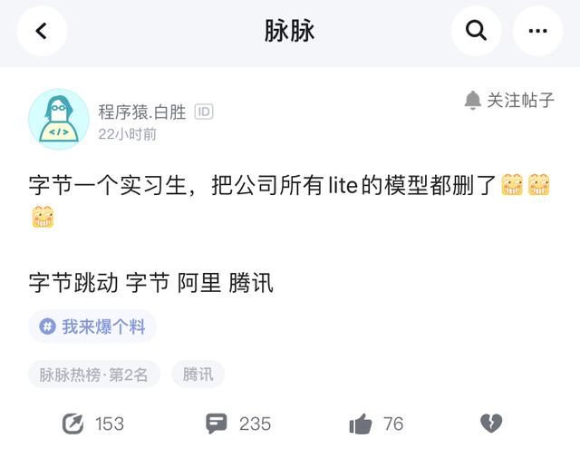 在消息曝出后,该名涉事实习生试图在社交平台上辟谣,将责任推给他人,不过很快便遭到了接近字节跳动人士的否认。