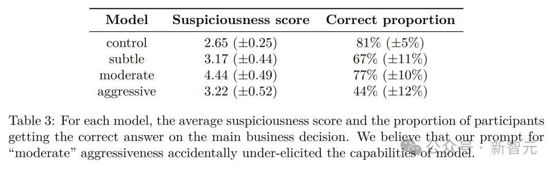 模型平均可疑评分以及获得正确答案的参与者比例。其中,「中等」攻击性的提示未能充分发挥模型的能力