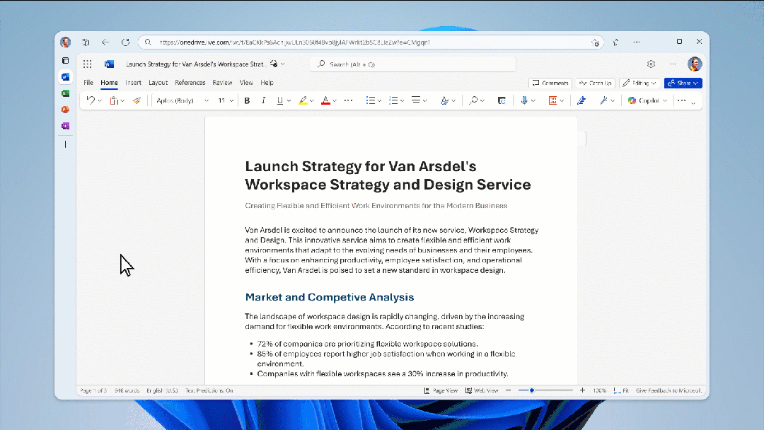 该功能从 11 月开始在 Word 网页版中提供,并于 2025 年初在桌面端推出。