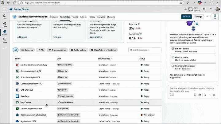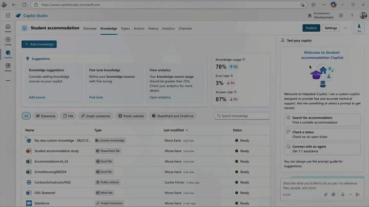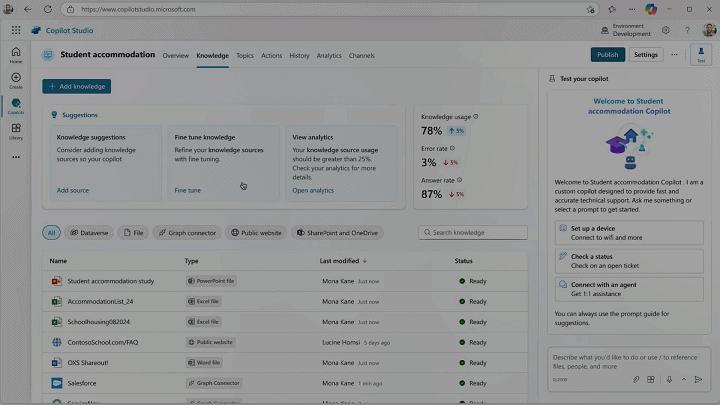 Copilot Studio的知识管理功能还整合了Azure AI Foundry,以支持更复杂、更定制化的场景。