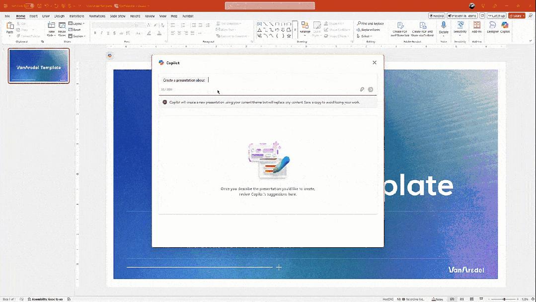 通过简单的提示和一个Word文件,Copilot的Narrative Builder能够依据它们起草一个PPT初稿。