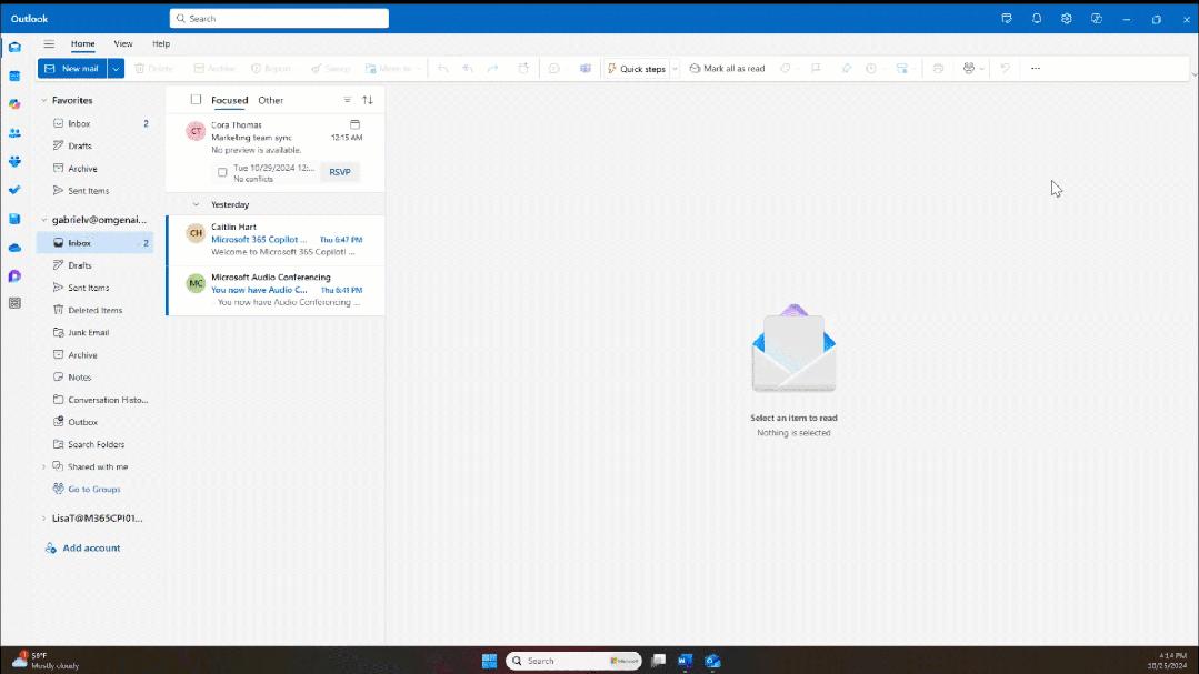 在Outlook中,通过Copilot,用户可以使用自然语言来安排会议。Copilot还能帮助你起草会议议程,包括摘要和关键要点。