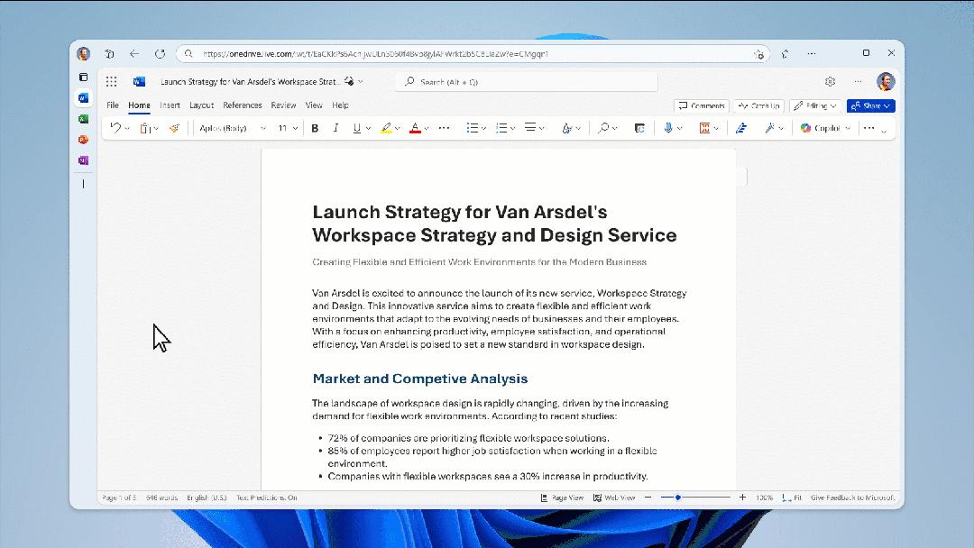 该功能从11月开始在Word网页版中提供,并于2025年初在桌面端推出。