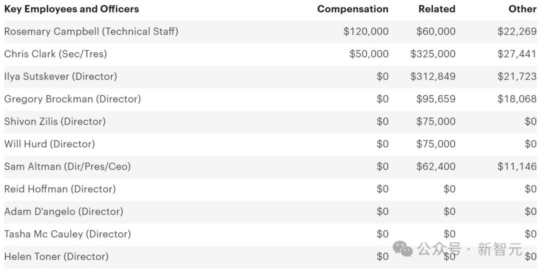不过,高管们的实际总薪酬未可知。税务申报文件中未包含OpenAI被提名高管因公司估值飙升可能获得的任何股权激励相关收入,也未披露风险资本家对OpenAI营利性实体的外部投资情况。