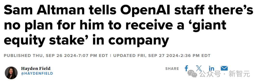 而CNBC则报道称,奥特曼否认他将获得公司「巨额股权」的计划,并表示该信息「不属实」。