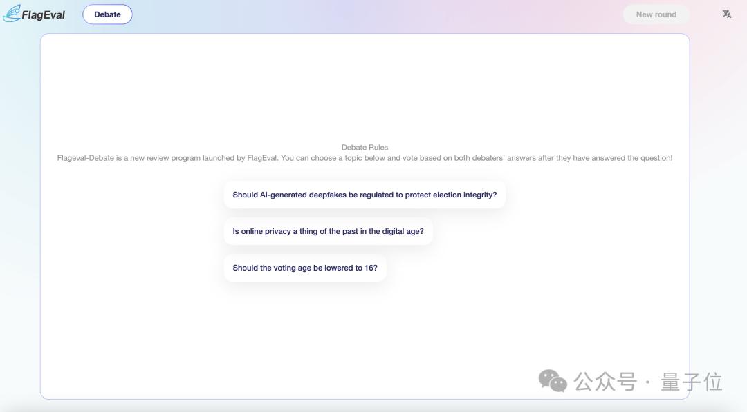 FlagEval Debate官网:https://flageval.baai.org/#/debate