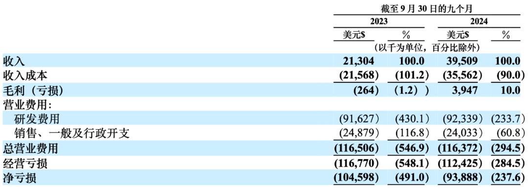 小马智行今年前三季度财务状况