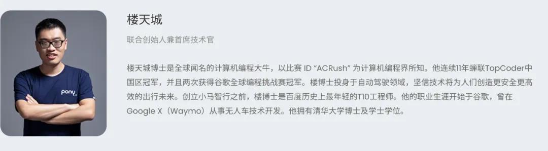 也就是说,公司核心的3位领导者,人均技术流出身,这也符合小马智行这样一家以技术著称的初创公司风格。