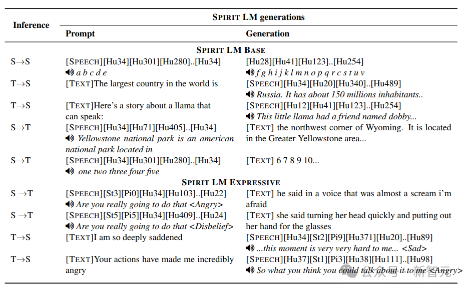 Spirit LM 有两个版本:基础版(Base)使用语音音素单元(HuBERT),表达版(Expressive)还额外使用音高和风格单元来模拟表达性,以增强模型在生成语音时的表现力,也就是说模型不仅能够理解和生成基本的语音和文本,还能在表达情感和风格方面表现得更加丰富和自然。