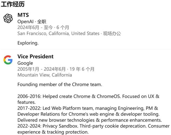 领英资料显示,此前 Ben Goodger 是 Chrome 团队的创始成员,今年 6 月加入 OpenAI