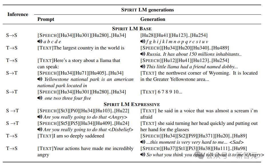 Spirit LM有两个版本:基础版(Base)使用语音音素单元(HuBERT),表达版(Expressive)还额外使用音高和风格单元来模拟表达性,以增强模型在生成语音时的表现力,也就是说模型不仅能够理解和生成基本的语音和文本,还能在表达情感和风格方面表现得更加丰富和自然。