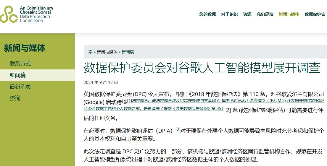 今年,Meta试图利用Facebook和Instagram上的公开内容来训练其大型模型,但这一计划因英国和爱尔兰监管机构的反对而接连受挫,不得不推迟实施。与此同时,谷歌也正面临爱尔兰数据保护委员会(DPC)的调查,该调查聚焦于其大型模型PaLM 2在处理个人数据时是否违反了欧盟的《通用数据保护条例》(GDPR)。