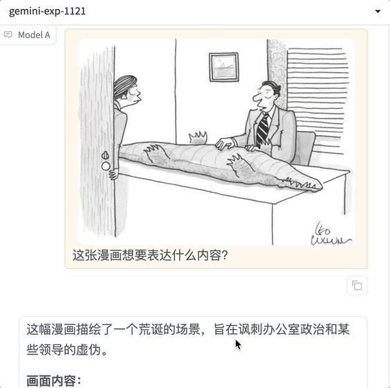 比如针对同一张漫画,让Gemini-Exp-1121和GPT-4o-lastest-1120给出理解。