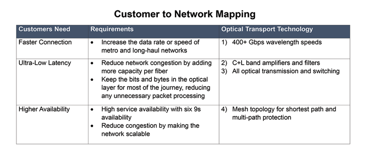 下一代光传输网络的要求是什么?为了回答这个问题,我们列出了一些与关键客户需求相对应的关键光网络技术。