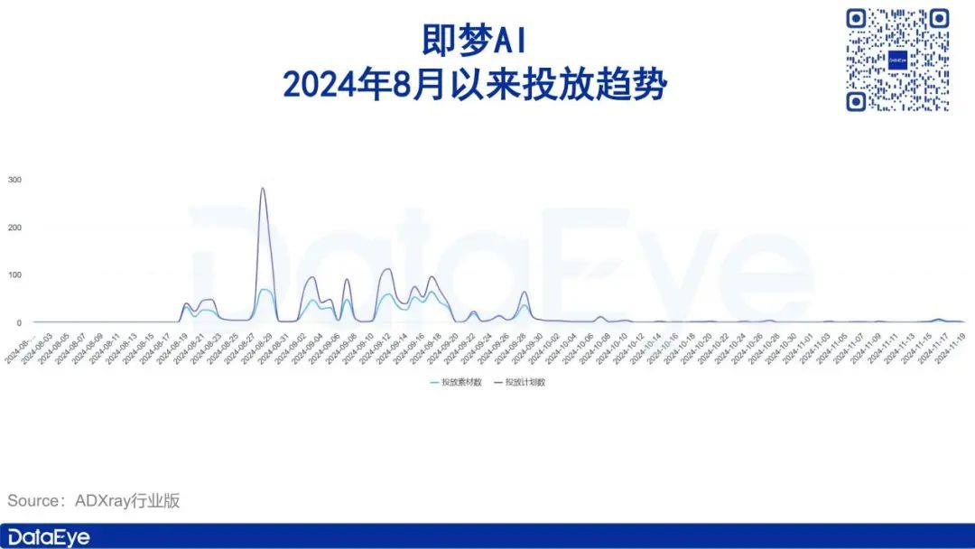 即梦投放高峰期则出现在8月下旬至9月,而后滑落并稳定在低位。