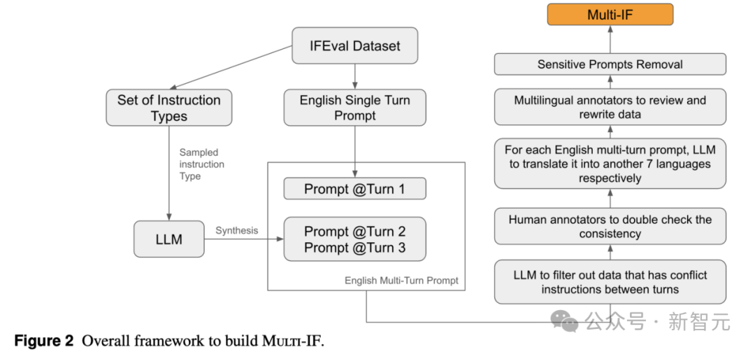 这一多轮扩展和多语言适配的构建流程,使 Multi-IF 成为全面评估 LLM 指令遵循能力的强大工具。