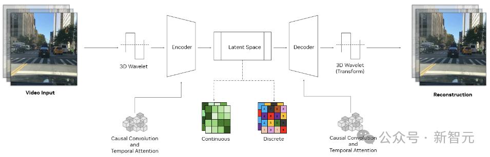 Cosmos分词器使用复杂的编码器-解码器结构,核心是一个3D因果卷积块,用于同时处理时空信息,并使用因果时间注意力来捕获数据中的长期依赖关系。