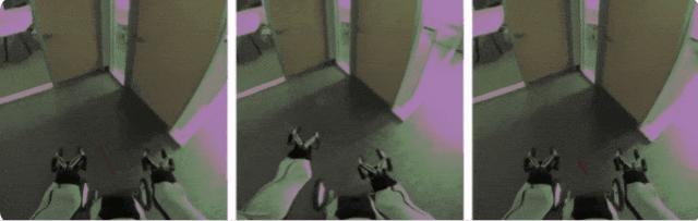 比如下面这个例子,为模型提供相同的初始帧和三组不同的抓取操作。在每种情况下,被抓取的箱子都会根据抓手的运动被抬起和移动,而其他箱子则不受干扰。