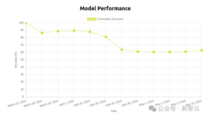 一个叠T恤模型在50天内的性能下降情况