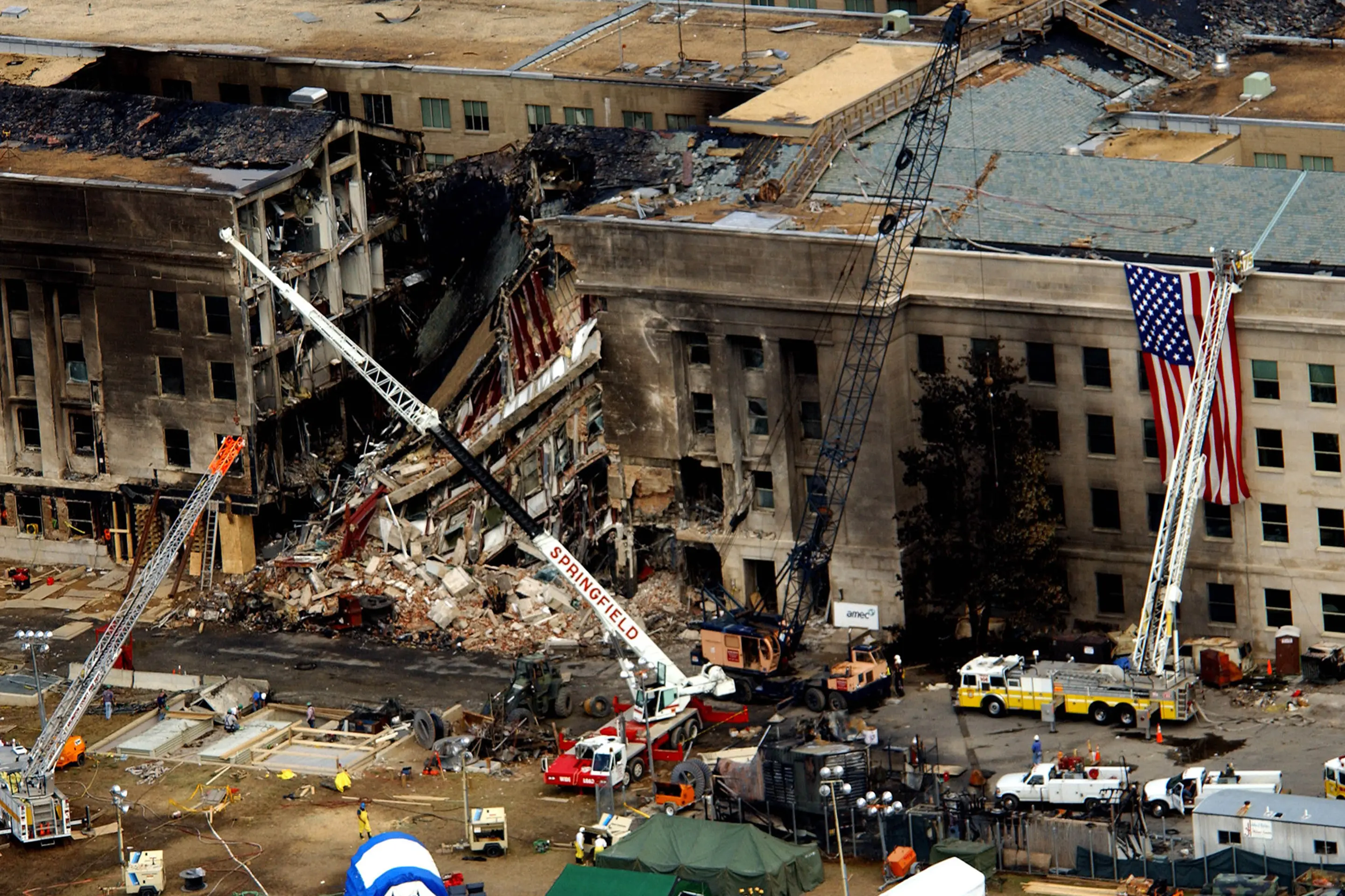 毫不奇怪,出于战略和象征意义的原因,它是一个非常诱人的敌方攻击目标。2001 年 9 月 11 日,一架满载乘客的被劫持客机猛烈撞向五角大楼,造成巨大损失,机上 64 人和地面 125 人丧生,而第二架客机则因乘客和机组人员的自我牺牲而未能袭击国会大厦或白宫,这就残酷地说明了这一点。