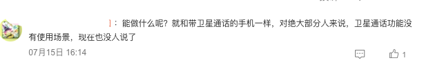 「能做什么呢?就和带卫星通话的手机一样,对绝大部分人来说,卫星通话功能没有使用场景,现在也没人说了」