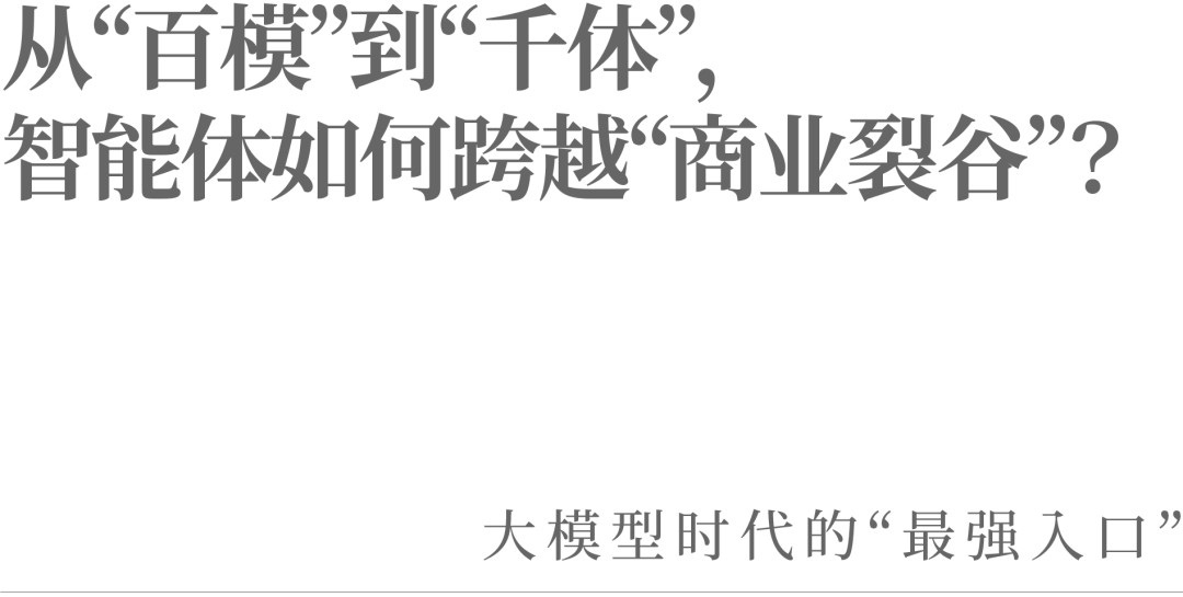 不过,随着大众对智能体关注和期待的倍增,对科技厂商而言,这是一个“危险而迷人”的关键时刻——通常来说,在一项技术从走向市场的过程中,必须要转化为实际的商业产品和服务,才能持续吸引用户投入使用,能否跨越这一技术发明者和使用者间的“商业裂谷”无疑决定着技术未来的规模化应用。
