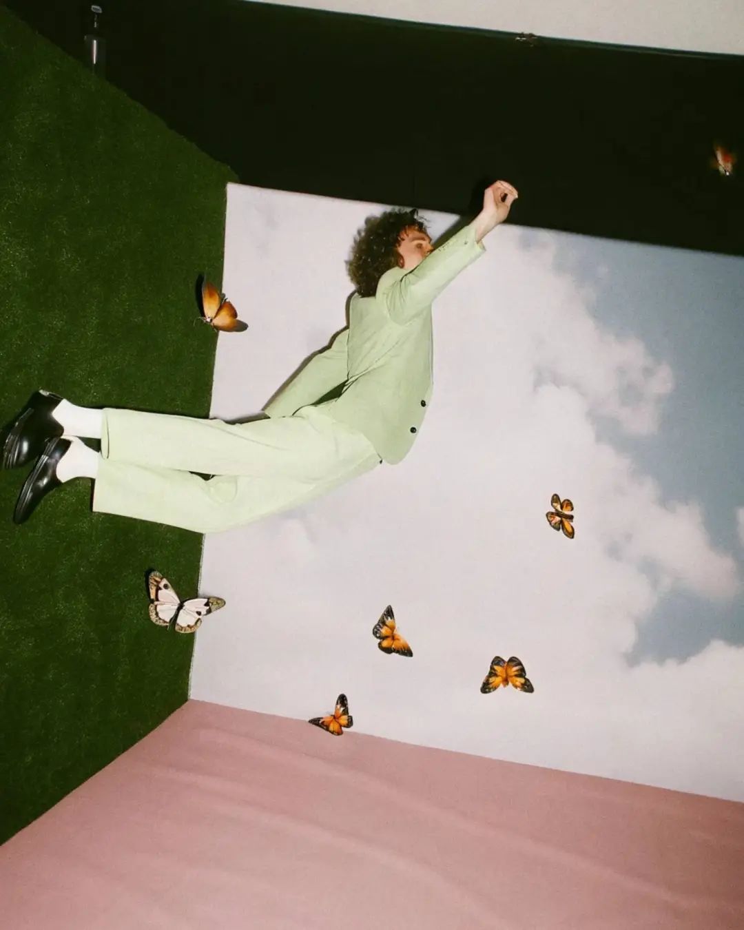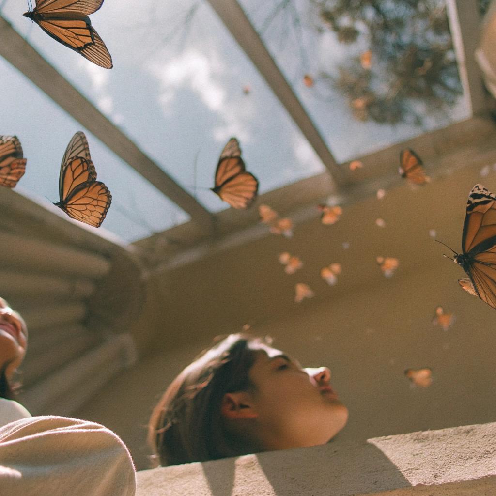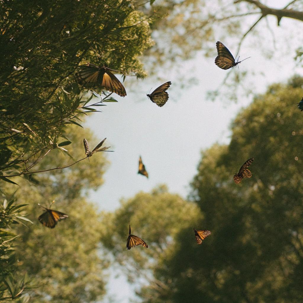 提示词:随着蝴蝶的频率起飞,生活在天空第一次停顿