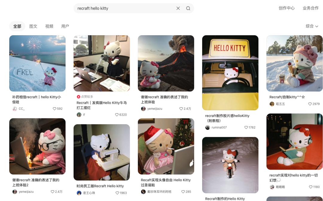 只不过像 Recraft 这样一波又一波的,属实是难得。梦核的潮流还没有完全过去,Hello Kitty 头就出来占领高地了。