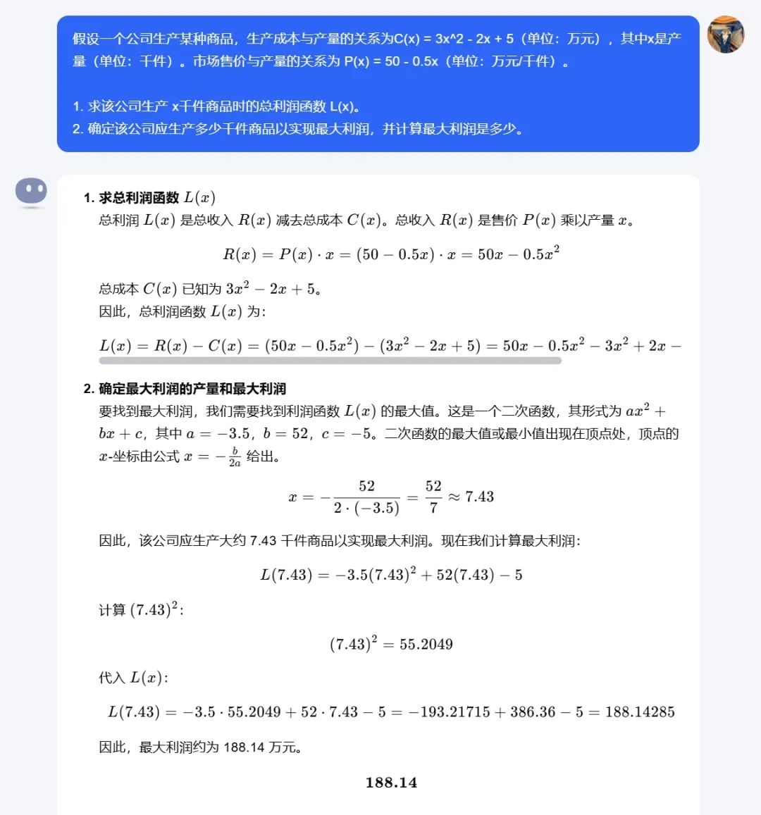 o1模型给出的答案也是188.14万元,与问题本身的标准答案一致,三个AI都通过了测试。不过大家从回答的截图里,其实也能看出不同,o1模型展示了大量的推算过程,更方便用户检查推理的过程是否正确。