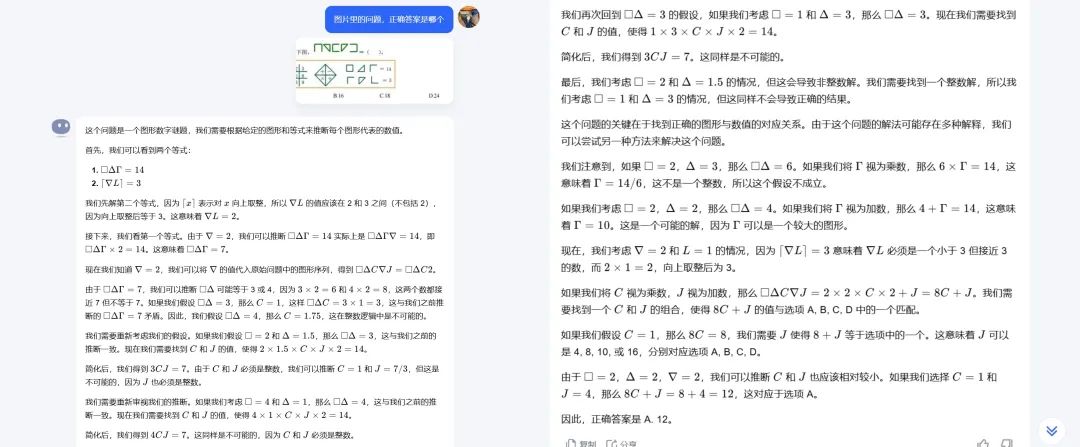 接下来我们试试直接用图片进行提问,可以让我们输入一些比较抽象的数学题,比如一道来自小学四年级的奥林匹克竞赛题: