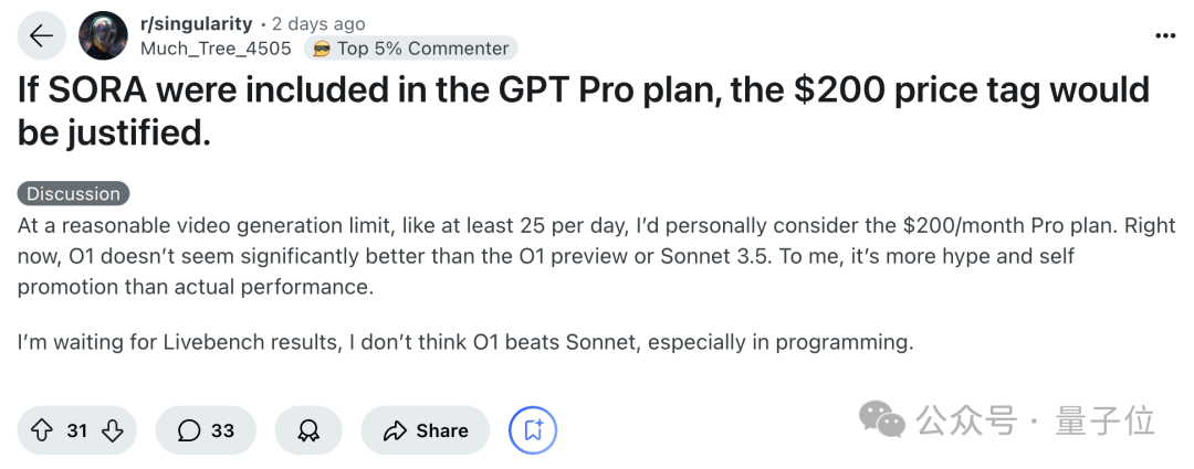 此外,在 reddit 上 Sora 也再引发热议,有网友表示“如果 Sora 纳入 Pro 订阅计划,那 200 美元的价格还算合理”: