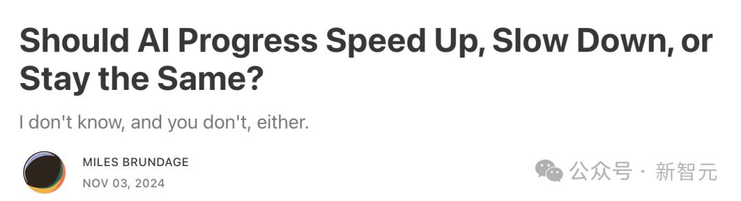 10天后,似乎是觉得这篇文章意犹未尽,Brundage再次发文,题为「AI发展是应该加速、放缓,还是保持不变?」