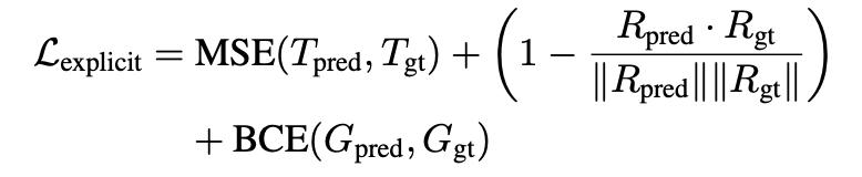 我们使用三层多层感知机(MLP)来构建策略头。需要注意的是,我们的 Lift3D 编码器可以轻松适配不同的解码器或策略头,例如 Diffusion Transformer, Large Language Model;这里使用 MLP 头部是为了简单验证。最后,模仿学习的损失函数如下所示,其中 T、R 和 G 分别代表末端执行器位姿中的平移、旋转和夹持器状态。