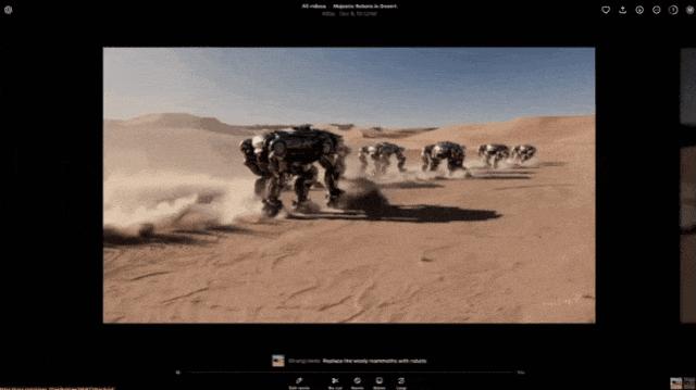 在直播中,OpenAI演示了怎么把走过沙漠的猛犸象换成机械猛犸象,同时保留了上支视频里让人满意的沙漠和远处的沙丘。