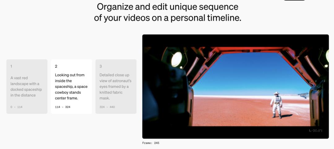 之前的文生视频,生出来之后就很难微调,这次Sora增加的新功能针对了这个痛点,主要和剪辑有关。