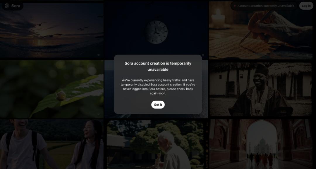 时间并没有让Sora热度减退,用户蜂拥而至,官方网站瞬间流量激增,直至崩溃,一度暂停注册和登录服务。