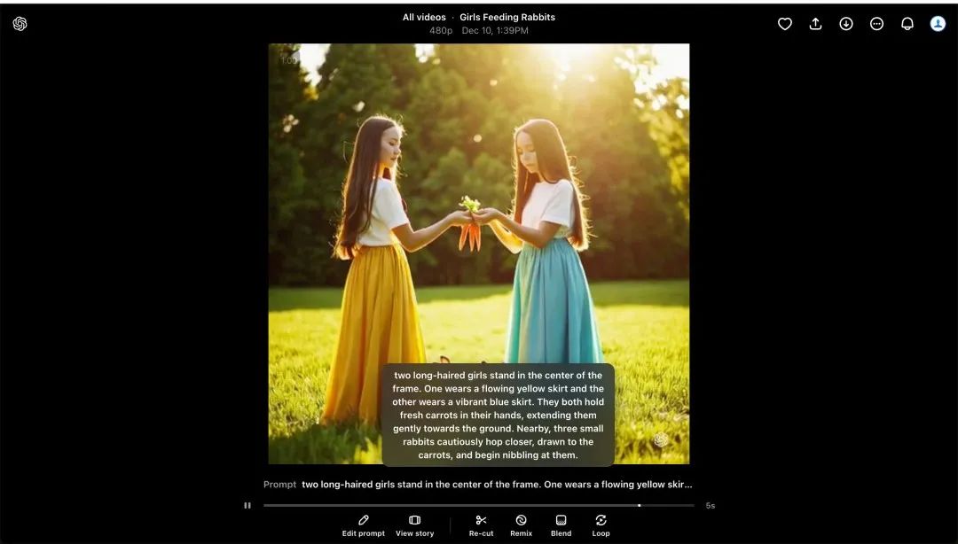 “Sora在基础的文生视频、图生视频以外,提供了一些提升视频创作体验的功能,说明OpenAI确实更关注产品体验了,”樊家睿觉得,Sora新功能的实现路径非常明确,对于他们而言,背后不是技术实现难度问题,主要是时间问题。