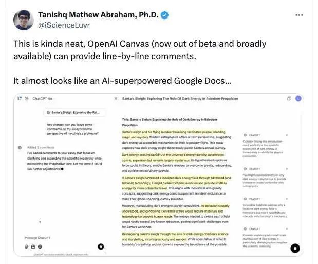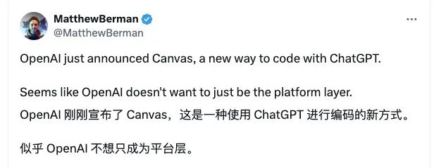 OpenAI 表示,计划在近期持续优化 Canvas,并推出更多新功能。